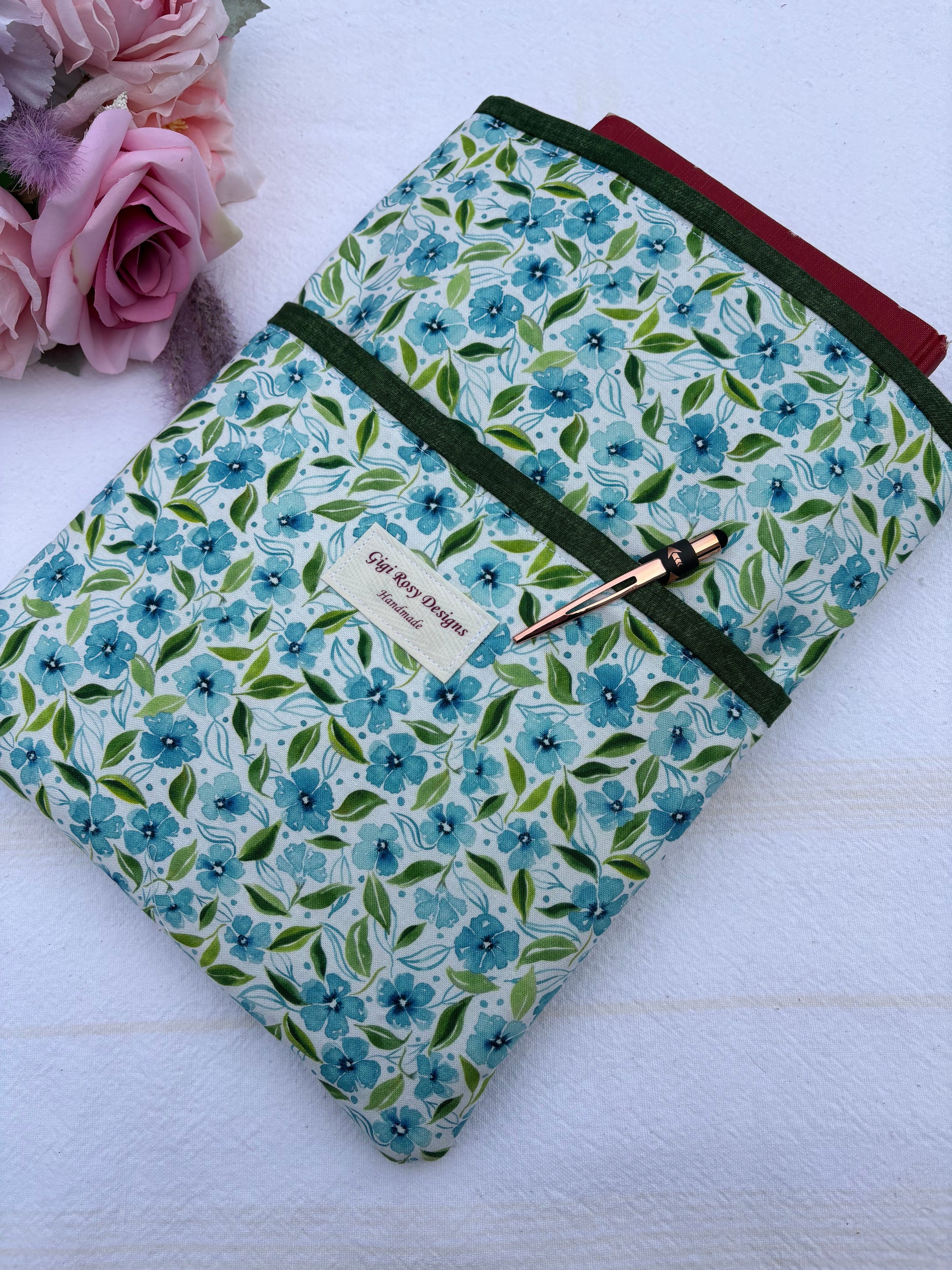 Protect your book with this padded book sleeve with pockets to secure your notes and pens. It is made of quality 100 % cotton fabric lined with a coordinating cotton fabric. This quality sleeve is padded with a polyester batting to protect your book.