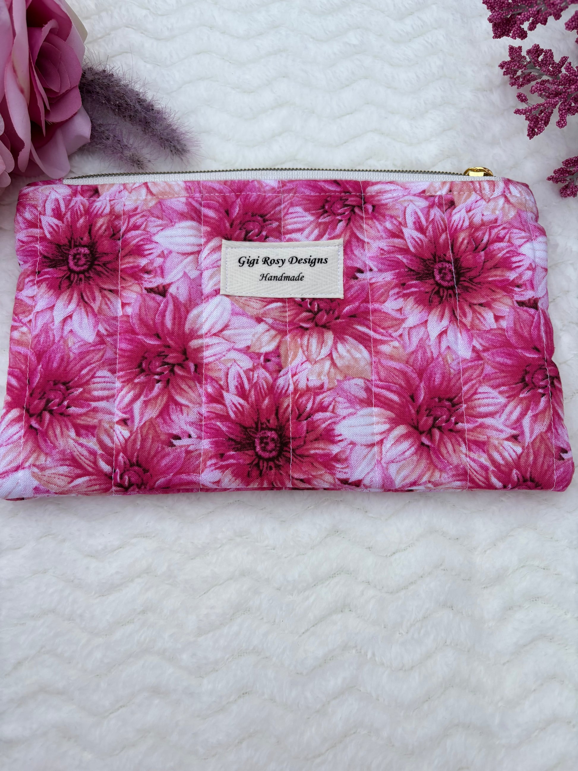 Quilted Zipper Pouch / Pencil Pouch / Makeup Pouch / Craft Supplies Pouch / Travel Pouch
