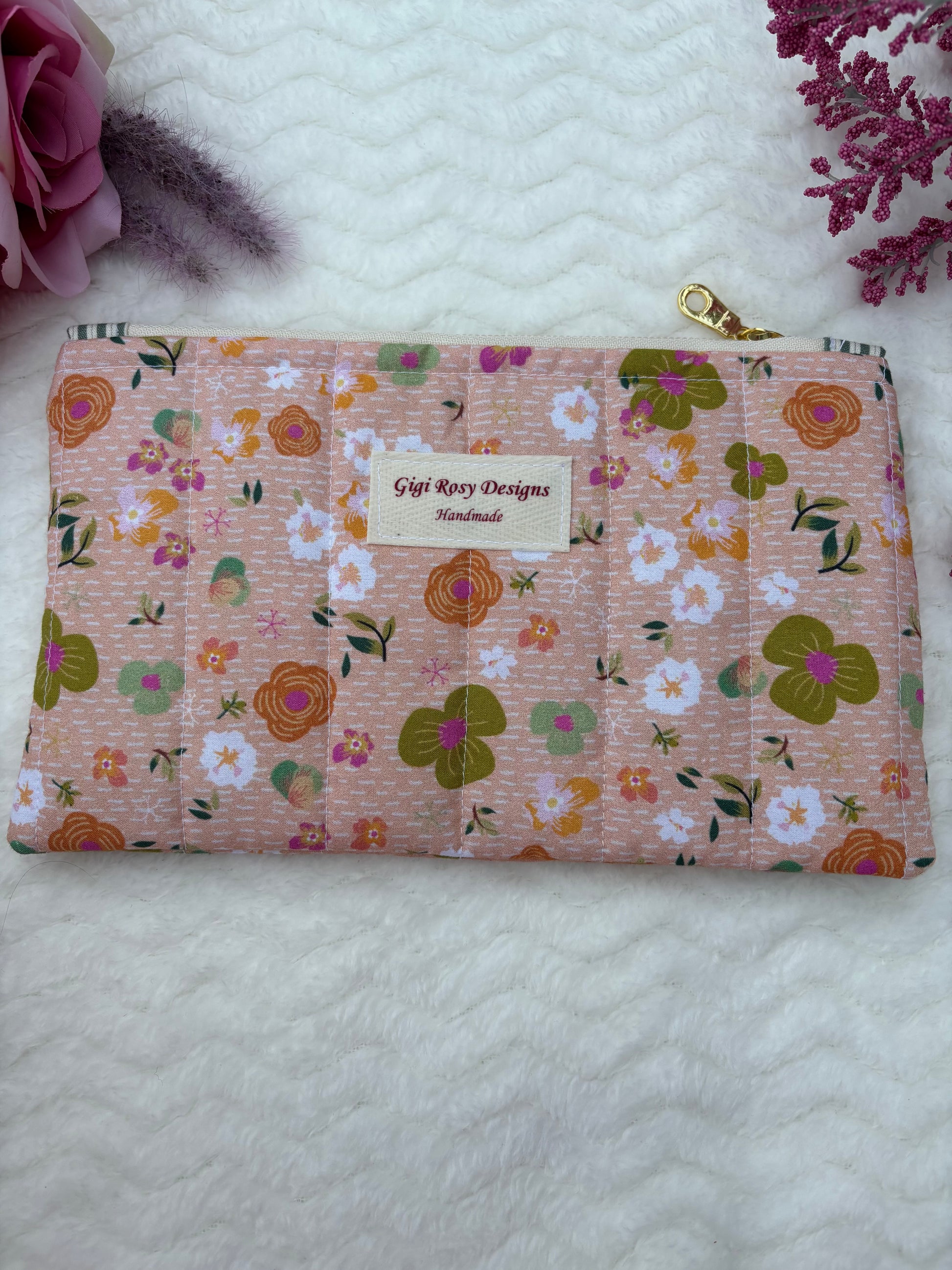 Quilted Zipper Pouch / Pencil Pouch / Makeup Pouch / Craft Supplies Pouch / Travel Pouch