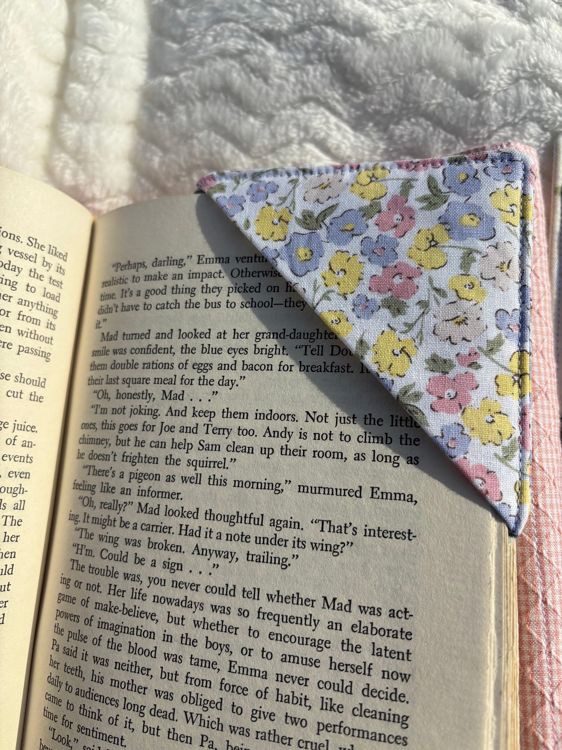 These adorable, cute bookmarks are made with 100% cotton fabrics and fusible interfacing. They measure 4"x4". Perfect for marking your book pages as your progress. Just slip it on multiple pages on top right corner.